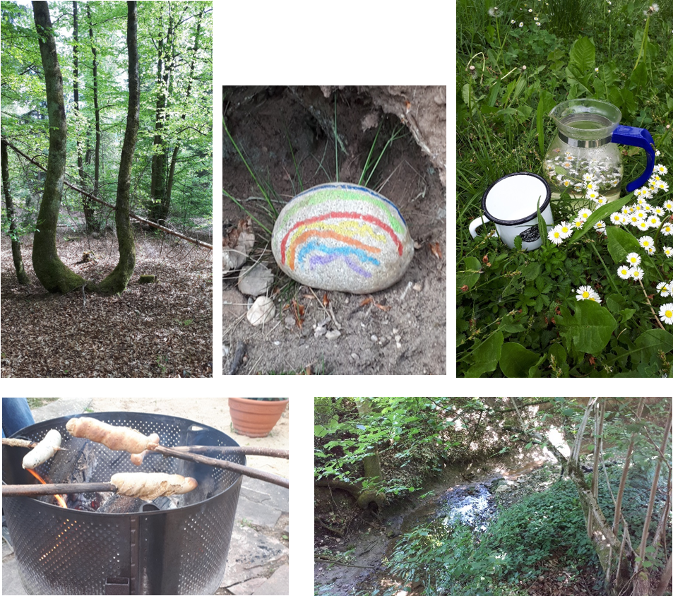 Wir gehen nicht nur spazieren, wir wollen den Wald, die Wiese, den Bach, die Hecken neu entdecken und herausfinden, was die Natur für uns bedeuten kann und was wir mit ihr verbinden. Wir sind ein Teil der Natur und das will immer wieder gelernt, gefühlt, erlebt werden….